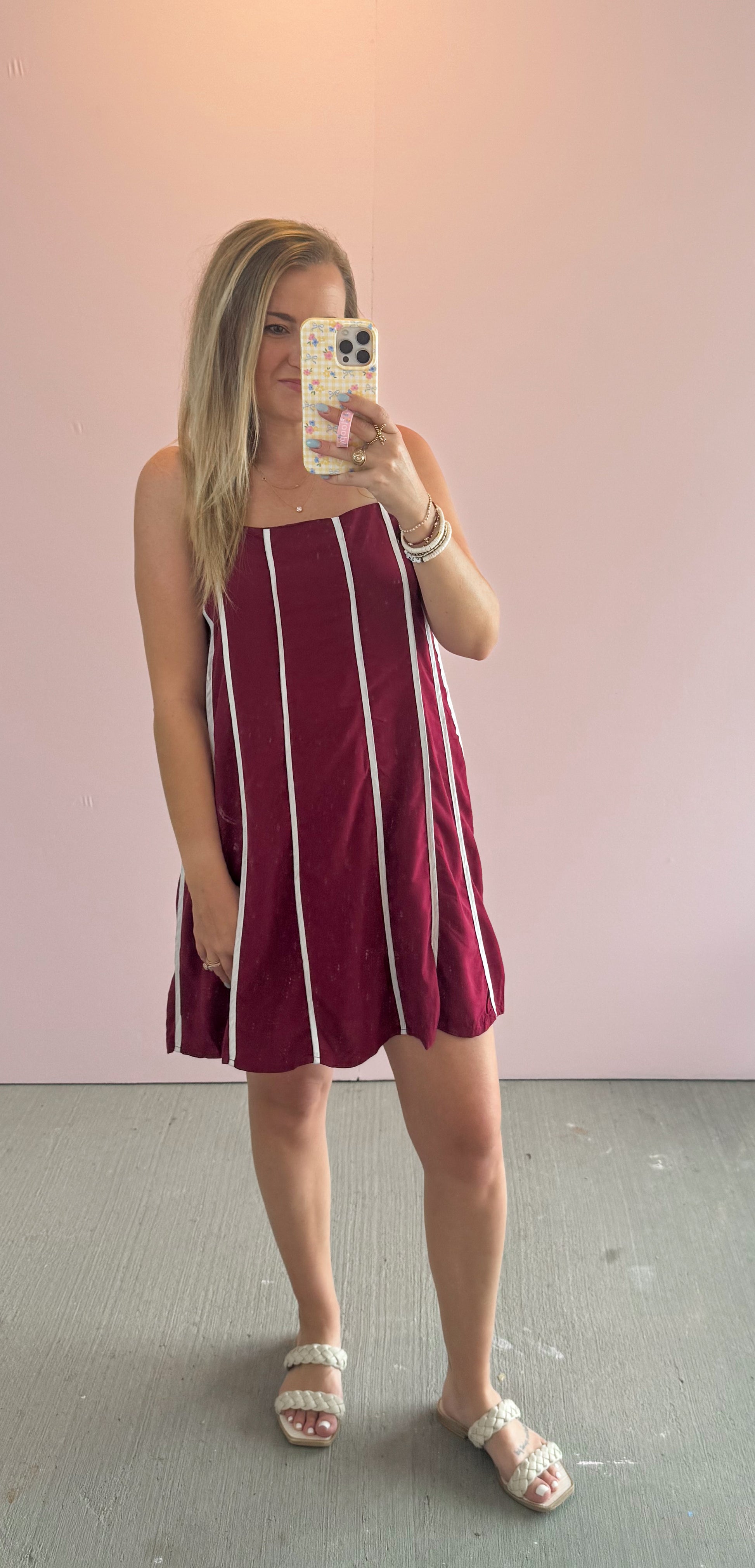 Playful and casual, the Game Day Striped Mini Dress is the ultimate throw-on-and-go piece. Designed with vertical stripes to elongate the silhouette, adjustable straps for the perfect fit, and a relaxed A-line shape, this dress is flattering and easy to wear. Whether layered with a denim jacket or styled solo, it’s the perfect pick for everything from weekend outings to cheering on your team.